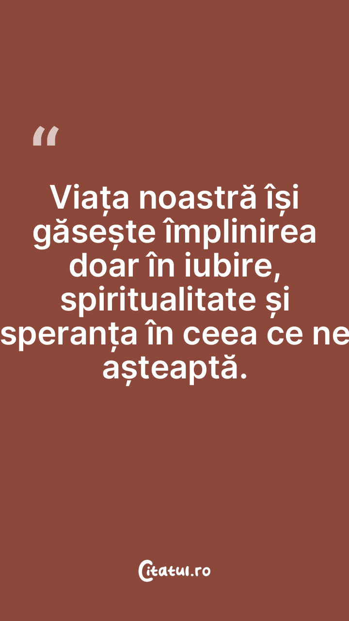 Viața noastră își găsește împlinirea doar în iubire, spiritualitate și speranța în ceea ce ne așteaptă.