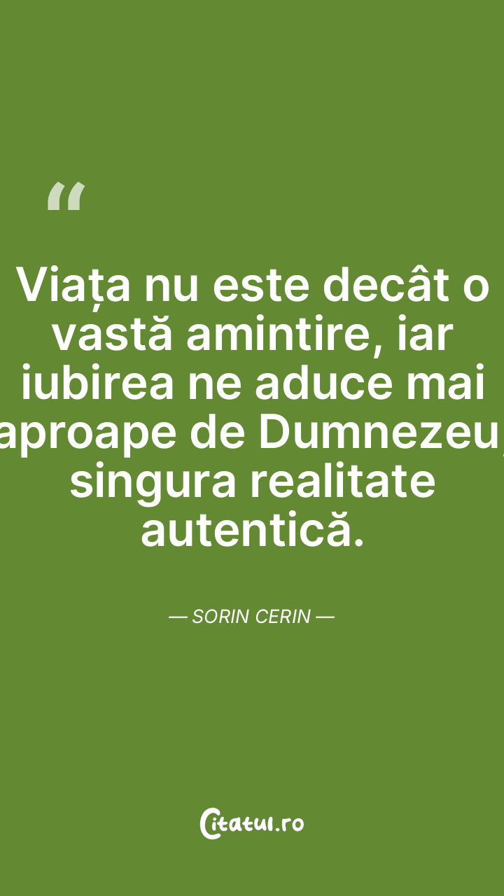 Viața nu este decât o vastă amintire, iar iubirea ne aduce mai aproape de Dumnezeu, singura realitate autentică. Sorin Cerin