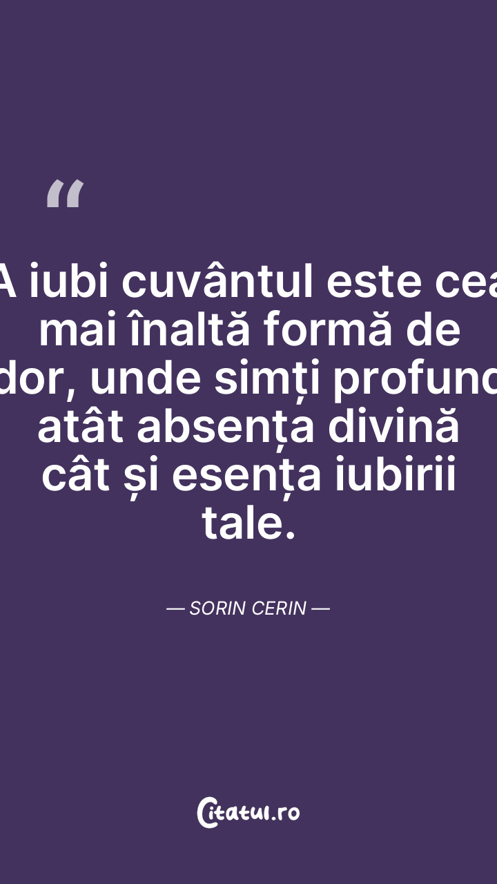 A iubi cuvântul este cea mai înaltă formă de dor, unde simți profund atât absența divină cât și esența iubirii tale. Sorin Cerin