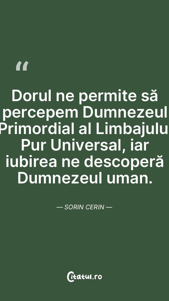 Dorul ne permite să percepem Dumnezeul Primordial al Limbajului Pur Universal, iar iubirea ne descoperă Dumnezeul uman. Sorin Cerin