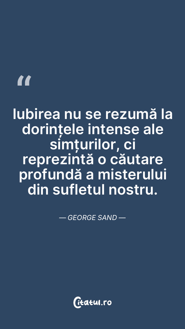 Iubirea nu se rezumă la dorințele intense ale simțurilor, ci reprezintă o căutare profundă a misterului din sufletul nostru. George Sand