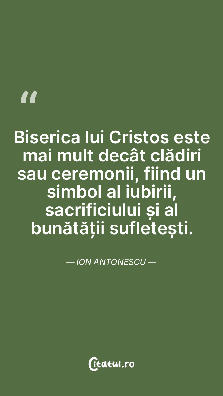 Biserica lui Cristos este mai mult decât clădiri sau ceremonii, fiind un simbol al iubirii, sacrificiului și al bunătății sufletești. Ion Antonescu