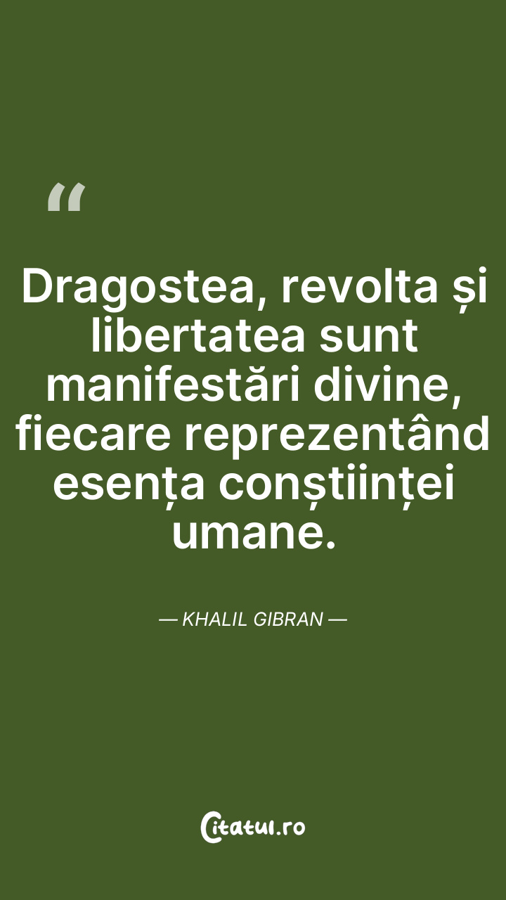 Dragostea, revolta și libertatea sunt manifestări divine, fiecare reprezentând esența conștiinței umane. Khalil Gibran
