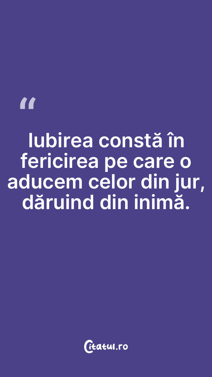 Iubirea constă în fericirea pe care o aducem celor...