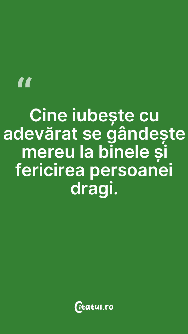 Cine iubește cu adevărat se gândește mereu la binele și fericirea persoanei dragi.