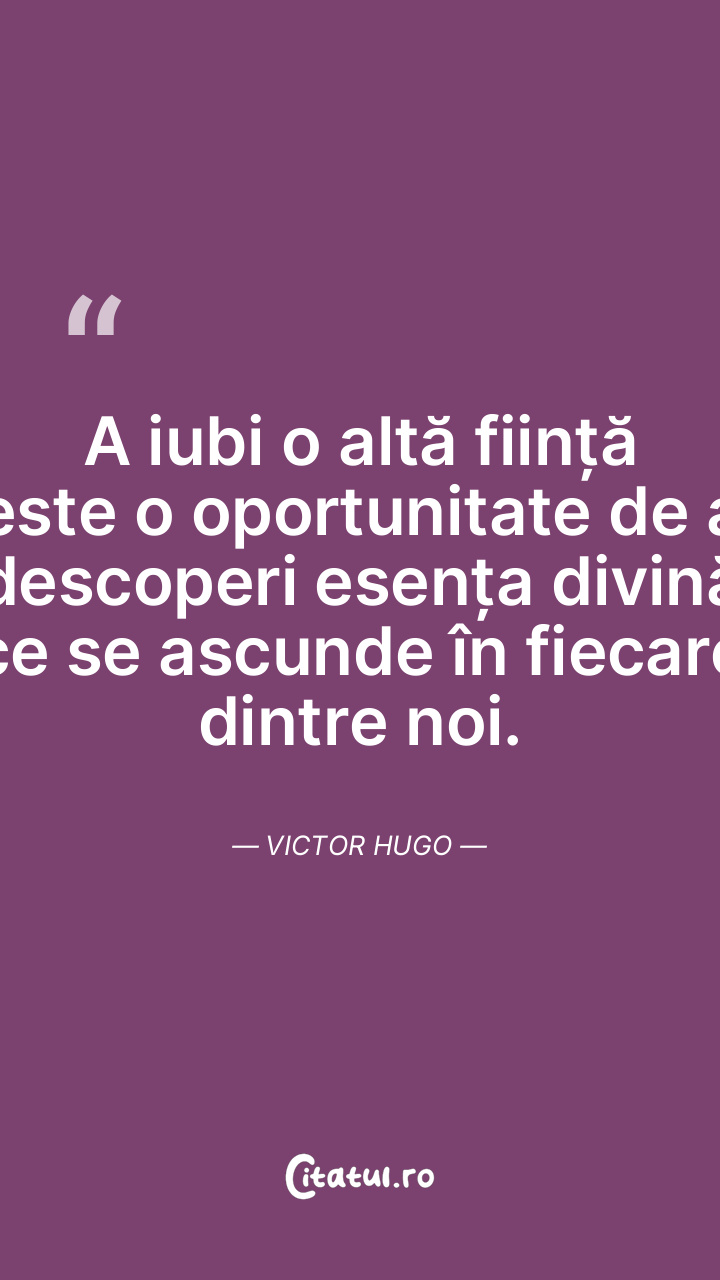 A iubi o altă ființă este o oportunitate de a descoperi esența divină ce se ascunde în fiecare dintre noi. Victor Hugo