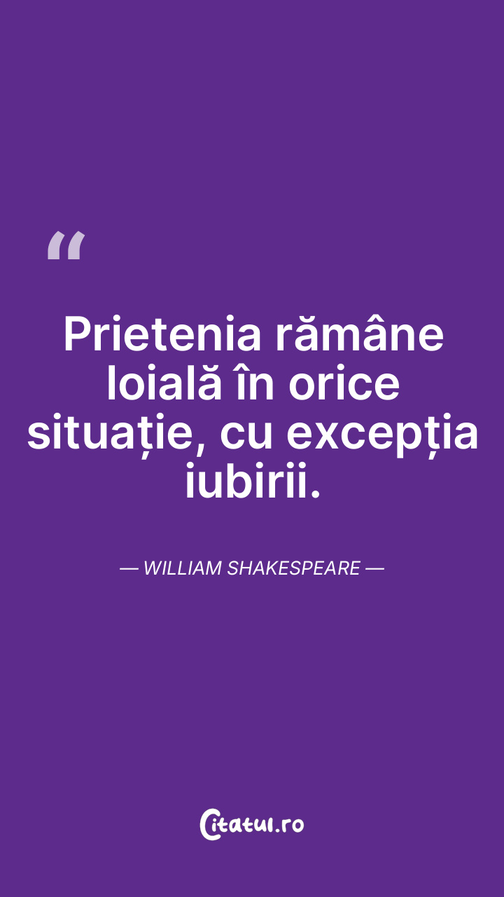 Prietenia rămâne loială în orice situație, cu excepția iubirii. William Shakespeare