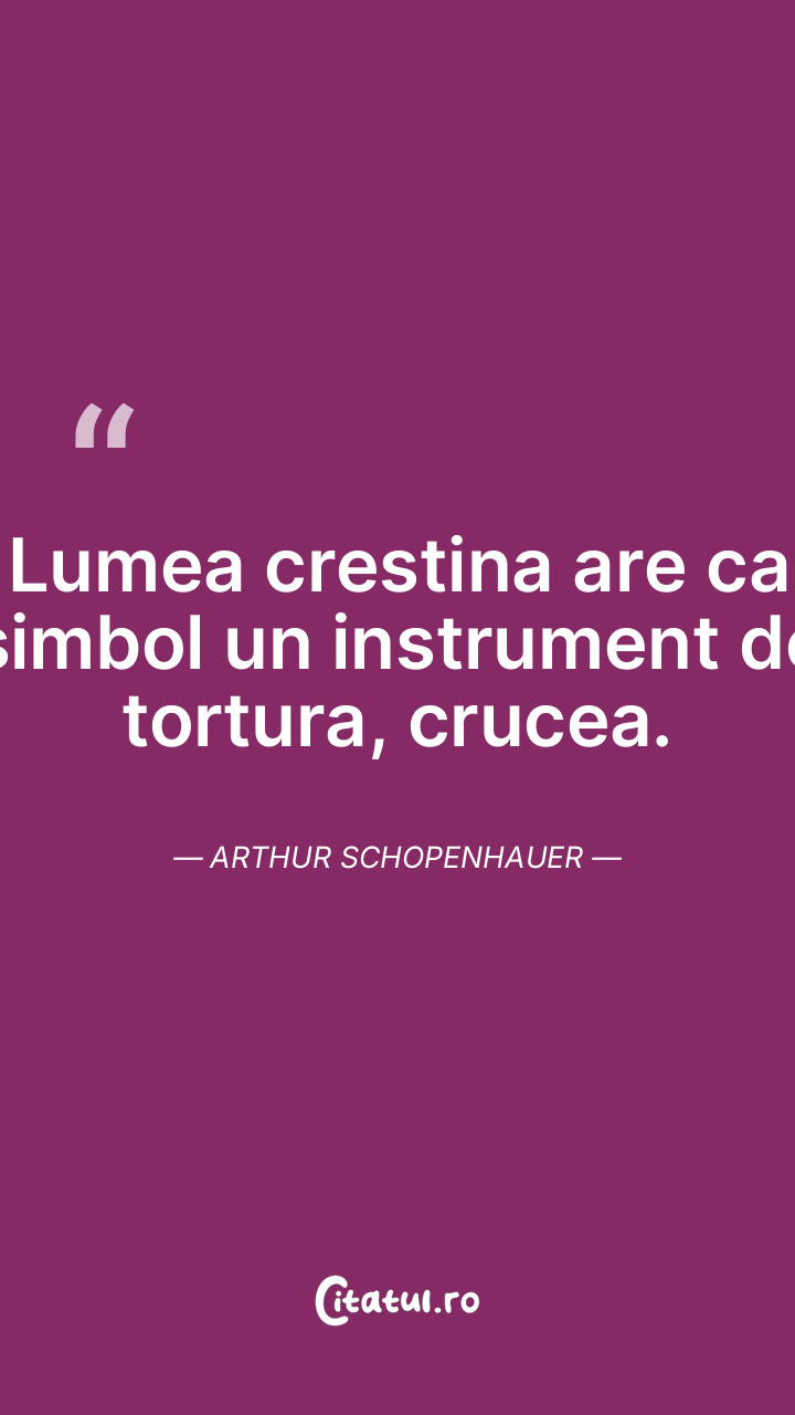 Lumea crestina are ca simbol un instrument de tortura, crucea. Arthur Schopenhauer