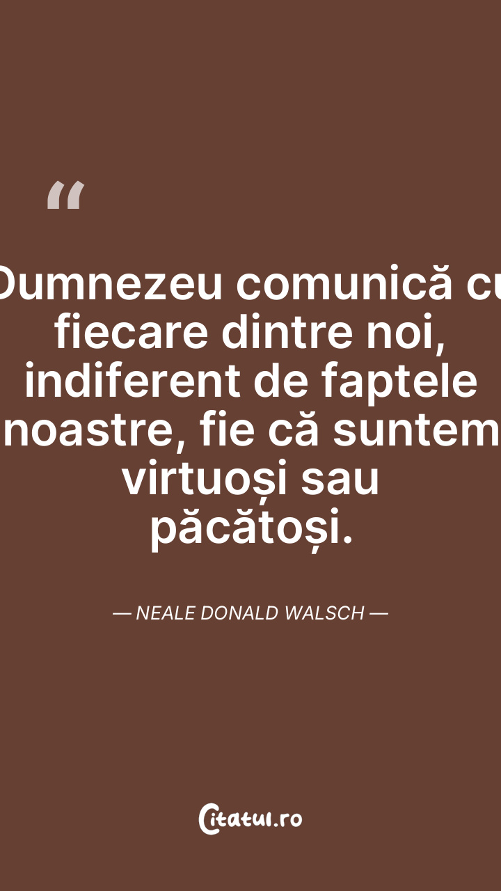 Dumnezeu comunică cu fiecare dintre noi, indiferent de faptele noastre, fie că suntem virtuoși sau păcătoși. Neale Donald Walsch