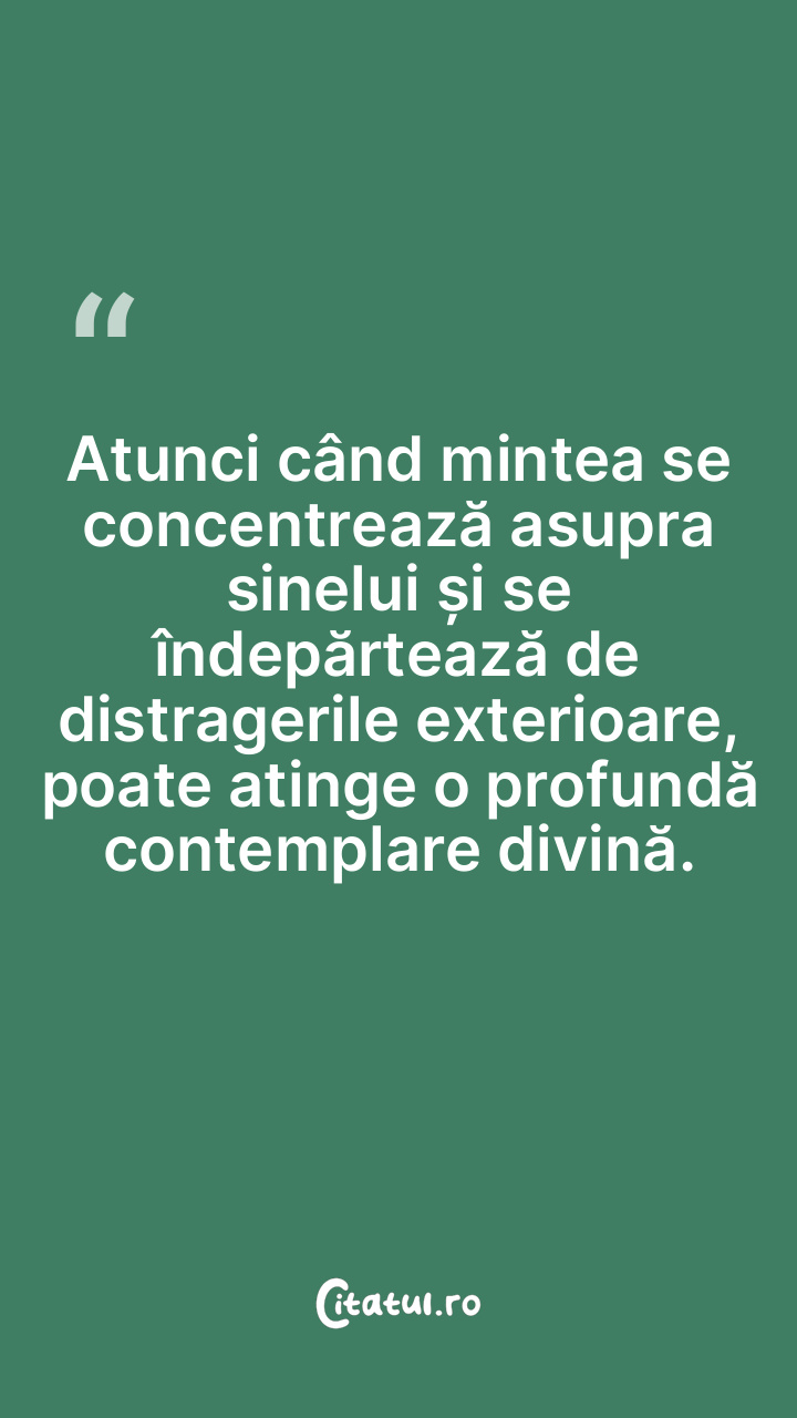 Atunci când mintea se concentrează asupra sinelui și se îndepărtează de distragerile exterioare, poate atinge o profundă contemplare divină.