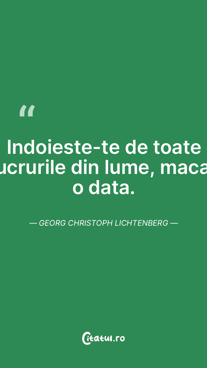 Indoieste-te de toate lucrurile din lume, macar o data. Georg Christoph Lichtenberg