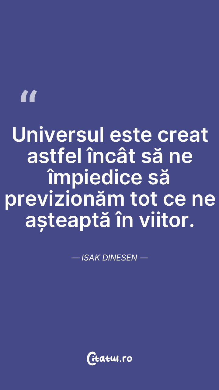 Universul este creat astfel încât să ne împiedice să previzionăm tot ce ne așteaptă în viitor. Isak Dinesen