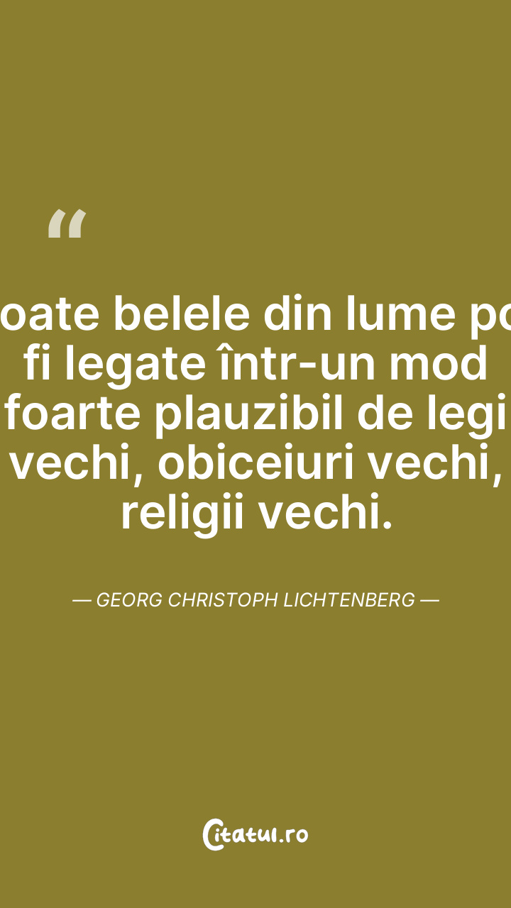 Toate belele din lume pot fi legate într-un mod foarte plauzibil de legi vechi, obiceiuri vechi, religii vechi. Georg Christoph Lichtenberg
