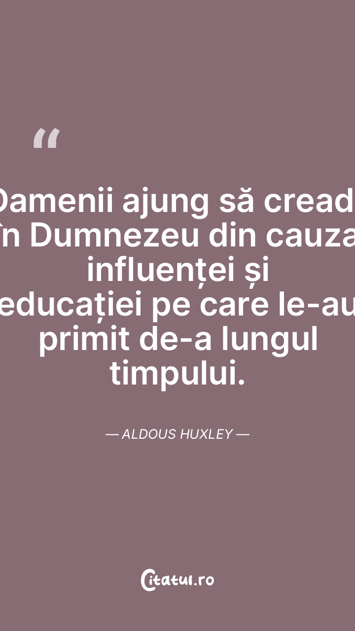 Oamenii ajung să creadă în Dumnezeu din cauza influenței și educației pe care le-au primit de-a lungul timpului. Aldous Huxley