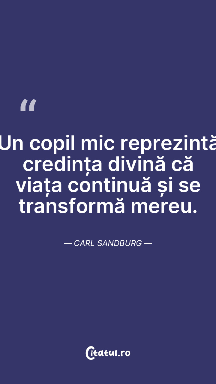 Un copil mic reprezintă credința divină că viața continuă și se transformă mereu. Carl Sandburg