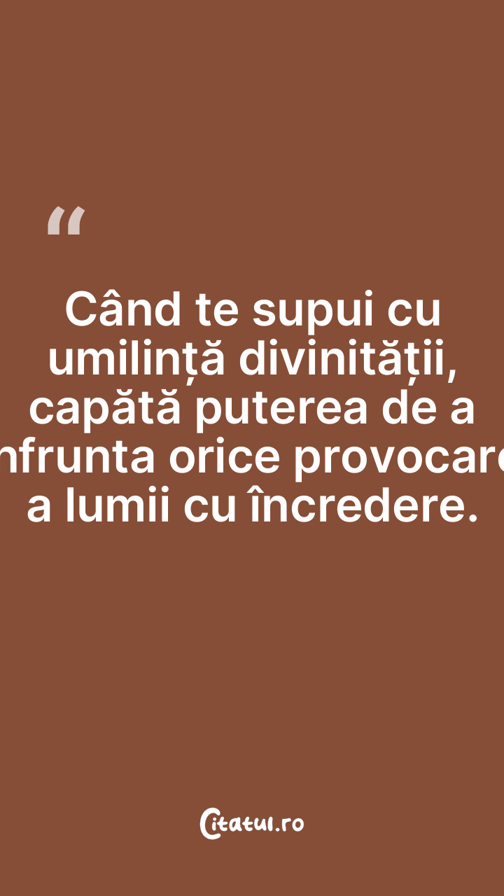 Când te supui cu umilință divinității, capătă puterea de a înfrunta orice provocare a lumii cu încredere.