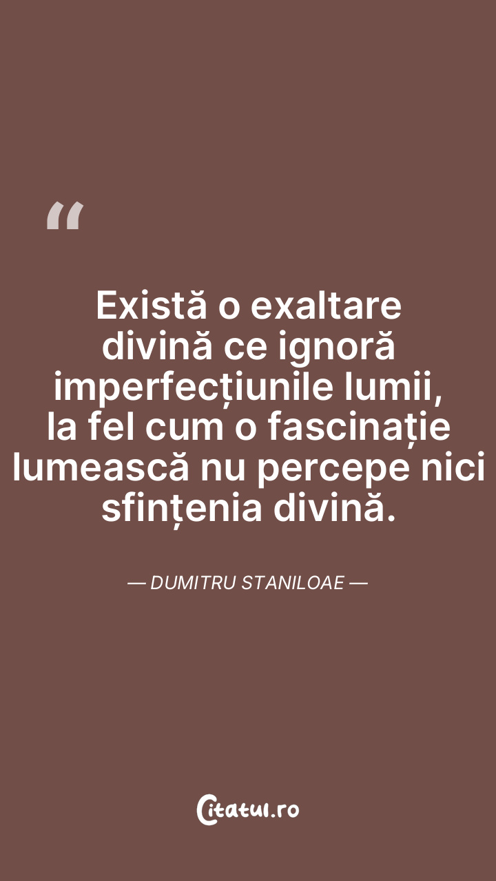 Există o exaltare divină ce ignoră imperfecțiunile lumii, la fel cum o fascinație lumească nu percepe nici sfințenia divină. Dumitru Staniloae