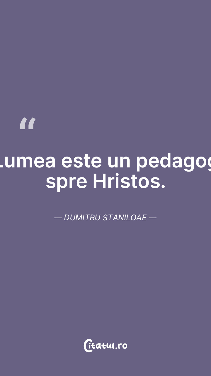 Lumea este un pedagog spre Hristos. Dumitru Staniloae