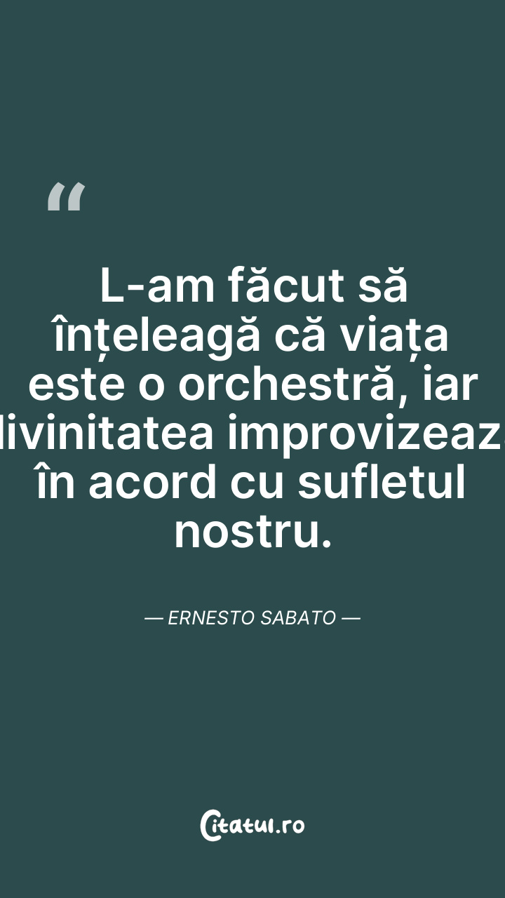 L-am făcut să înțeleagă că viața este o orchestră, iar divinitatea improvizează în acord cu sufletul nostru. Ernesto Sabato