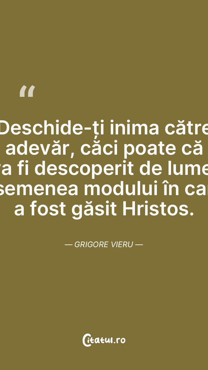 Deschide-ți inima către adevăr, căci poate că va fi descoperit de lume, asemenea modului în care a fost găsit Hristos. Grigore Vieru