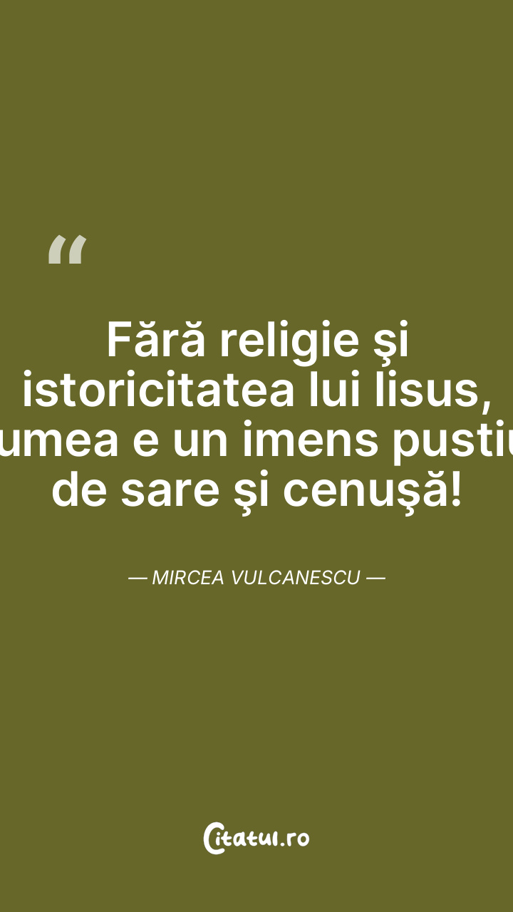 Fără religie şi istoricitatea lui Iisus, lumea e un imens pustiu de sare şi cenuşă! Mircea Vulcanescu