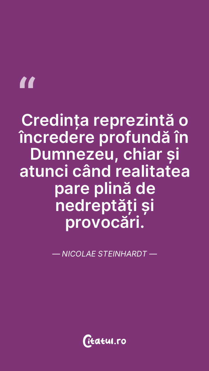 Credința reprezintă o încredere profundă în Dumnezeu, chiar și atunci când realitatea pare plină de nedreptăți și provocări. Nicolae Steinhardt