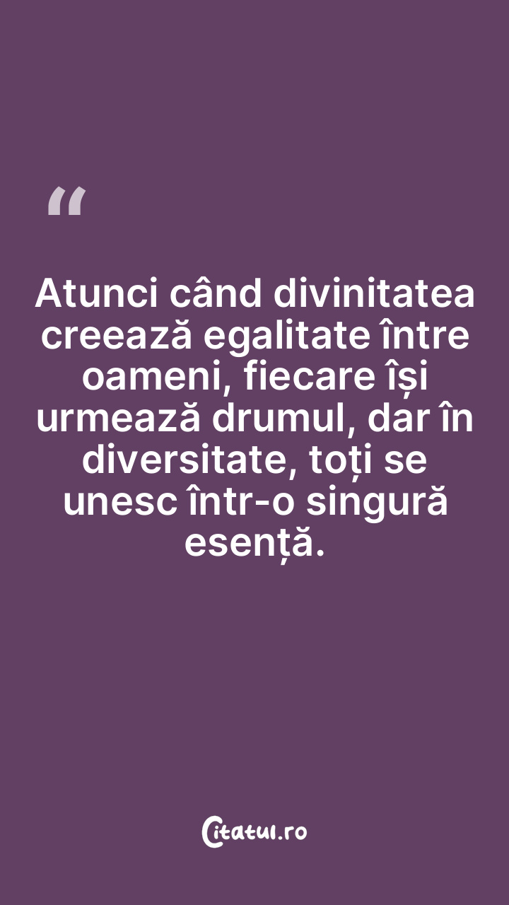 Atunci când divinitatea creează egalitate între oameni, fiecare își urmează drumul, dar în diversitate, toți se unesc într-o singură esență.