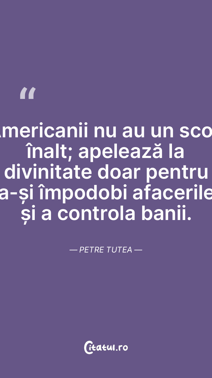 Americanii nu au un scop înalt; apelează la divinitate doar pentru a-și împodobi afacerile și a controla banii. Petre Tutea