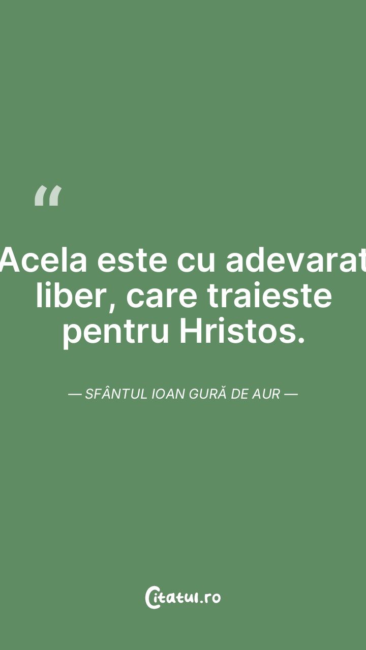 Acela este cu adevarat liber, care traieste pentru Hristos. Sfântul Ioan Gură de Aur