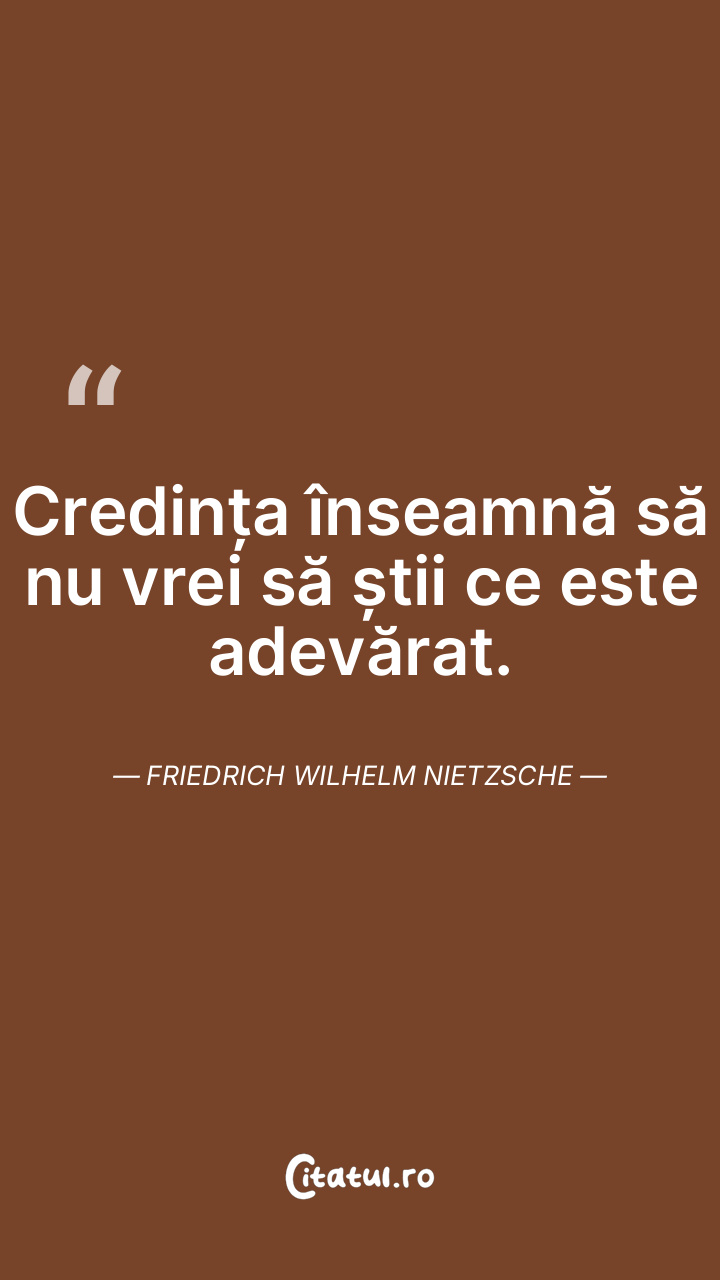 Credința înseamnă să nu vrei să știi ce este adevărat. Friedrich Wilhelm Nietzsche