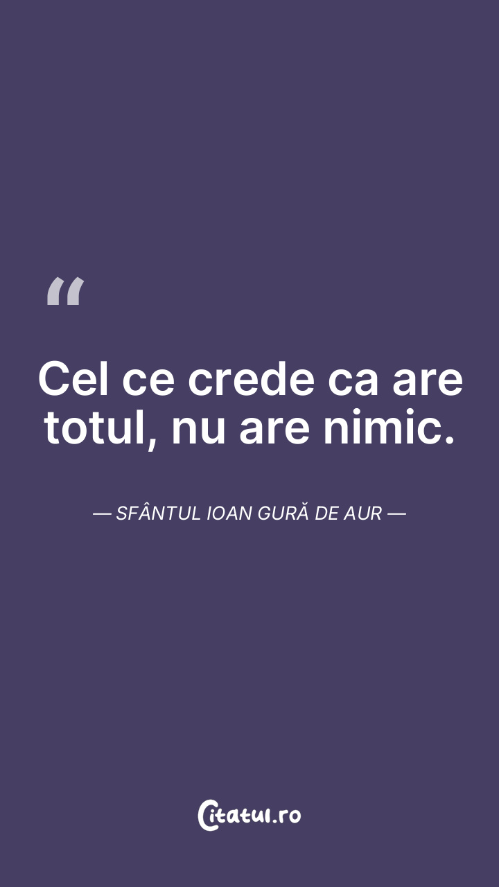 Cel ce crede ca are totul, nu are nimic. Sfântul Ioan Gură de Aur