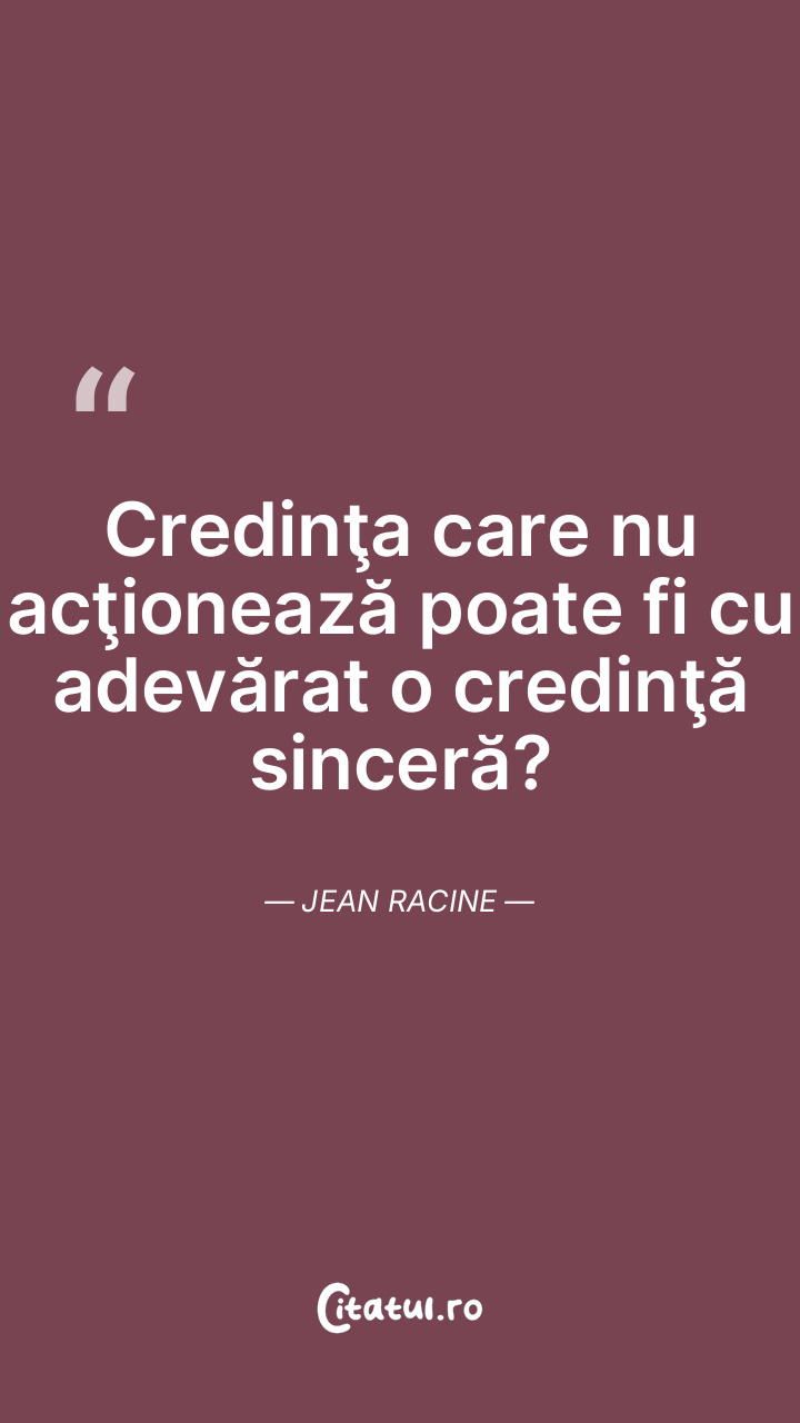 Credinţa care nu acţionează poate fi cu adevărat o credinţă sinceră? Jean Racine