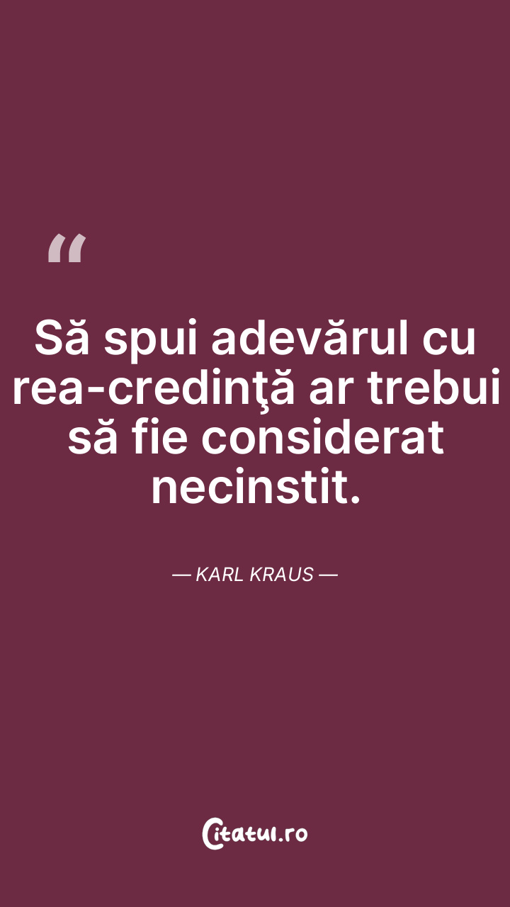 Să spui adevărul cu rea-credinţă ar trebui să fie considerat necinstit. Karl Kraus
