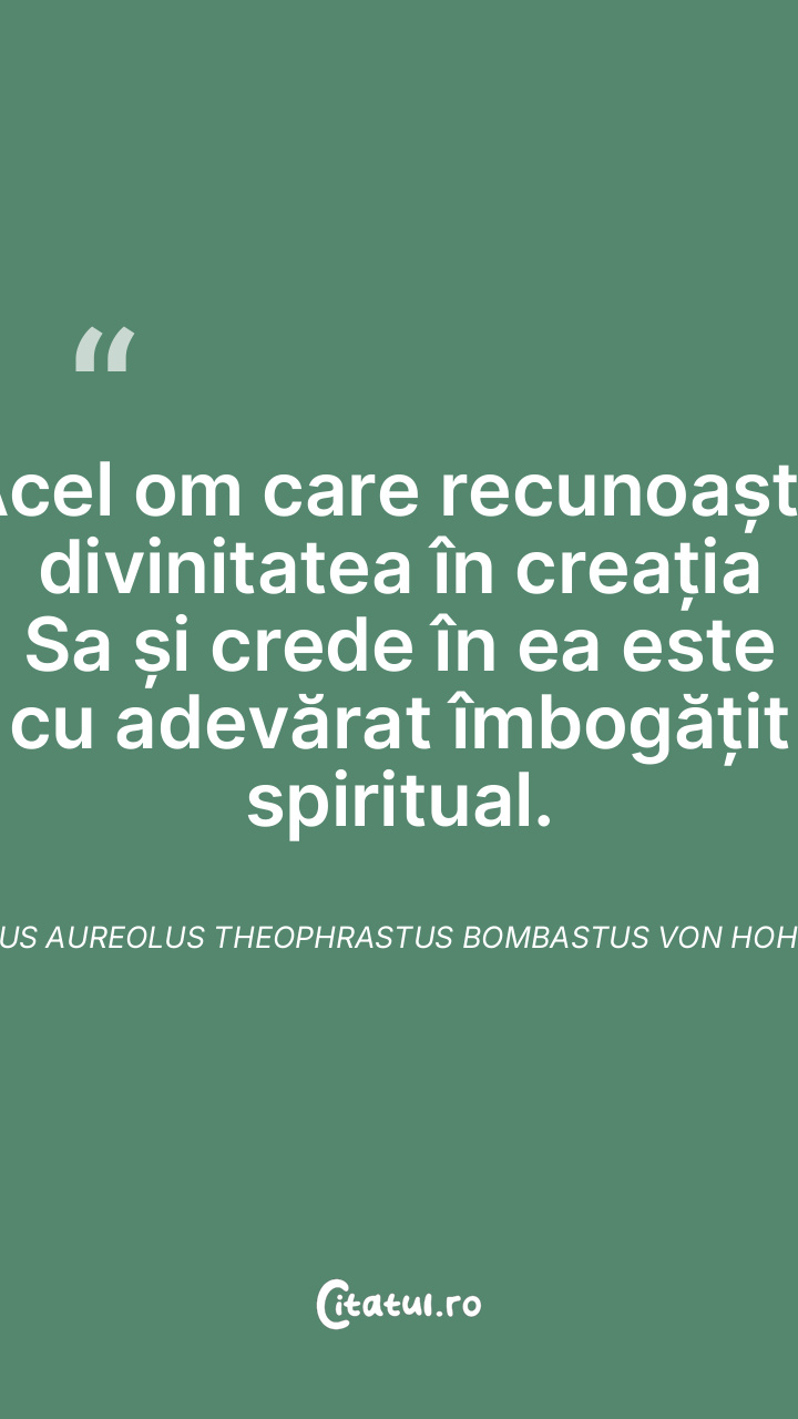 Acel om care recunoaște divinitatea în creația Sa și crede în ea este cu adevărat îmbogățit spiritual. Philippus Aureolus Theophrastus Bombastus von Hohenheim