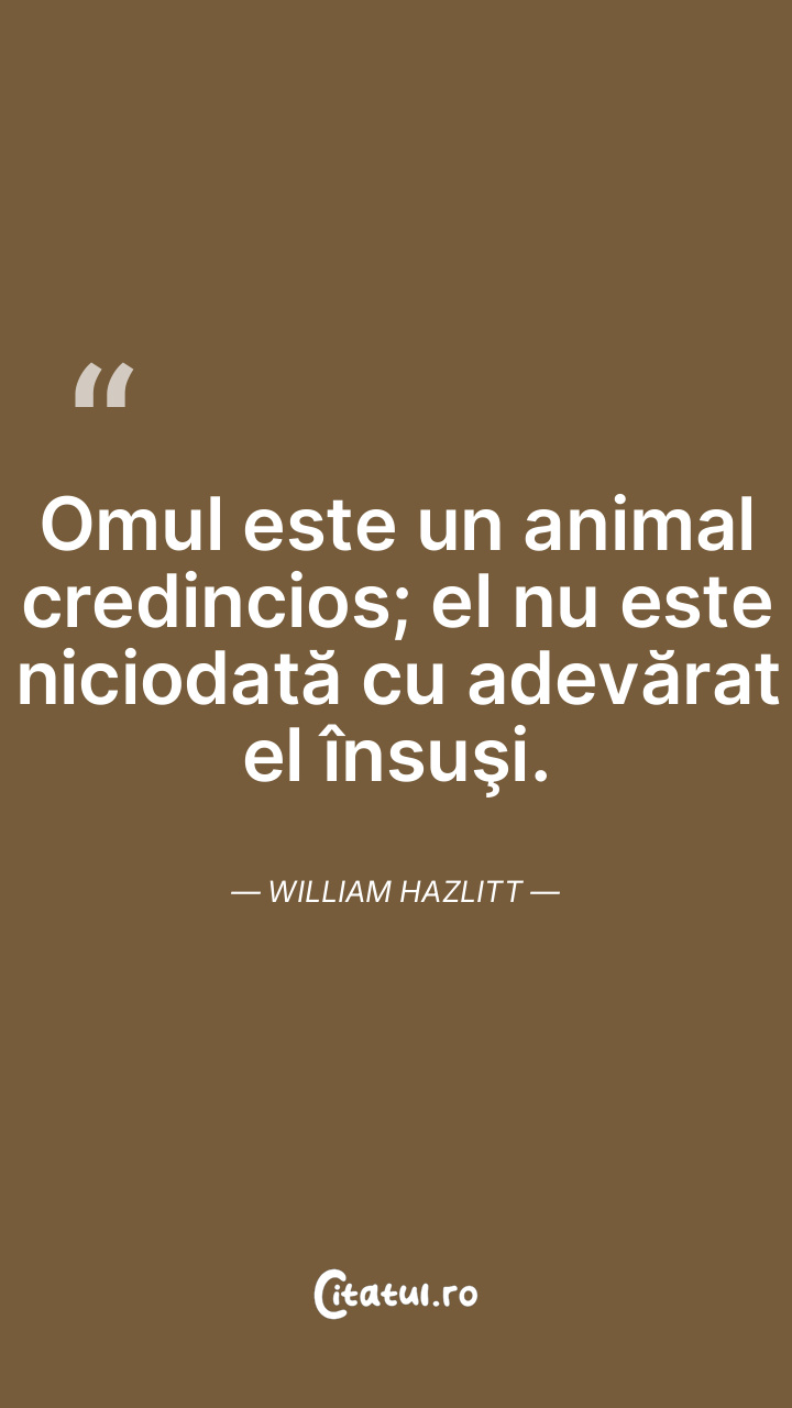 Omul este un animal credincios; el nu este niciodată cu adevărat el însuşi. William Hazlitt