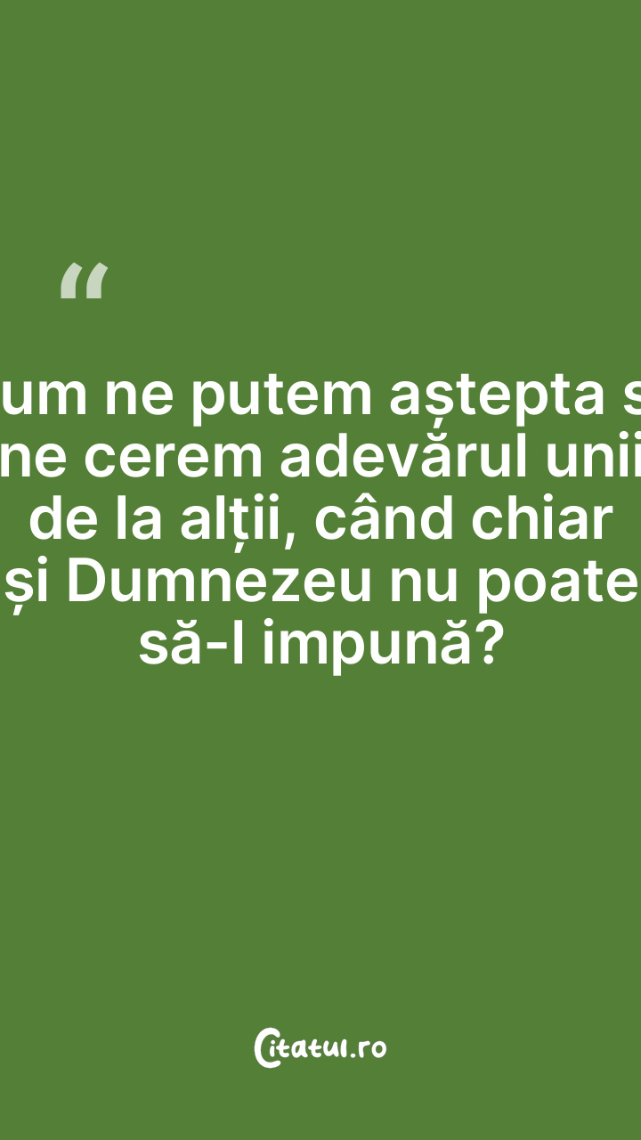 Cum ne putem aștepta să ne cerem adevărul unii de la alții, când chiar și Dumnezeu nu poate să-l impună?