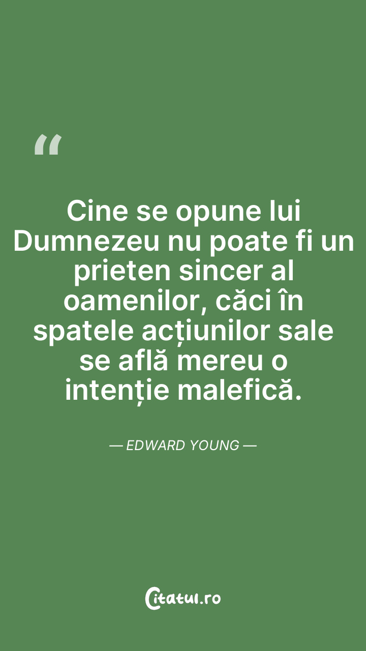Cine se opune lui Dumnezeu nu poate fi un prieten sincer al oamenilor, căci în spatele acțiunilor sale se află mereu o intenție malefică. Edward Young