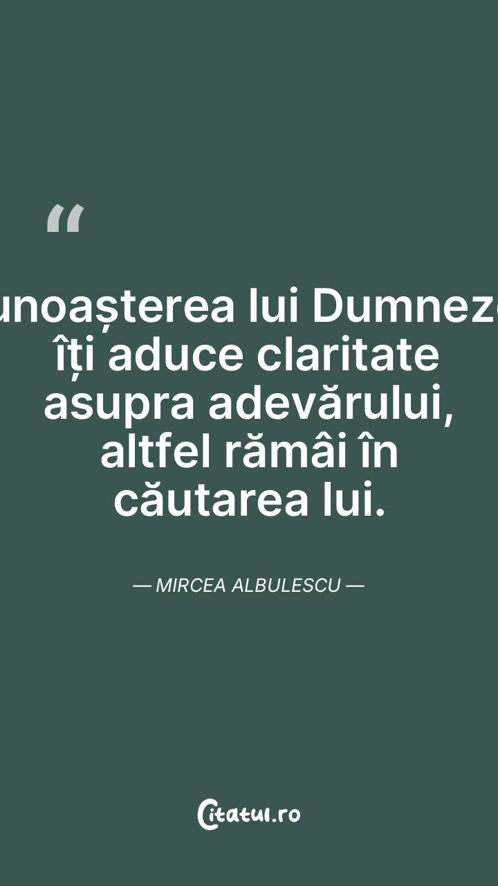 Cunoașterea lui Dumnezeu îți aduce claritate asupra adevărului, altfel rămâi în căutarea lui. Mircea Albulescu