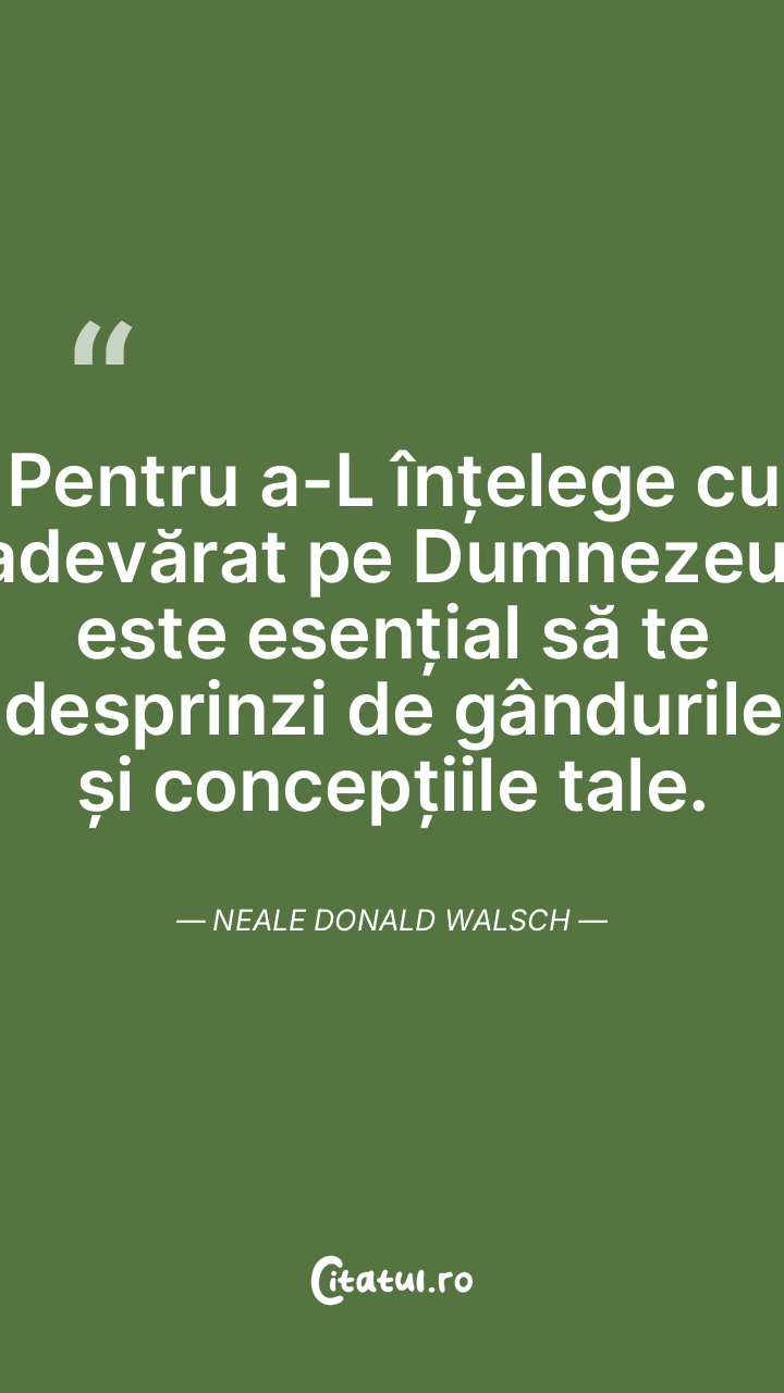 Pentru a-L înțelege cu adevărat pe Dumnezeu, este esențial să te desprinzi de gândurile și concepțiile tale. Neale Donald Walsch
