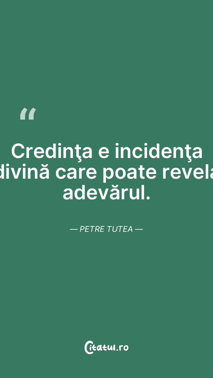 Credinţa e incidenţa divină care poate revela adevărul. Petre Tutea