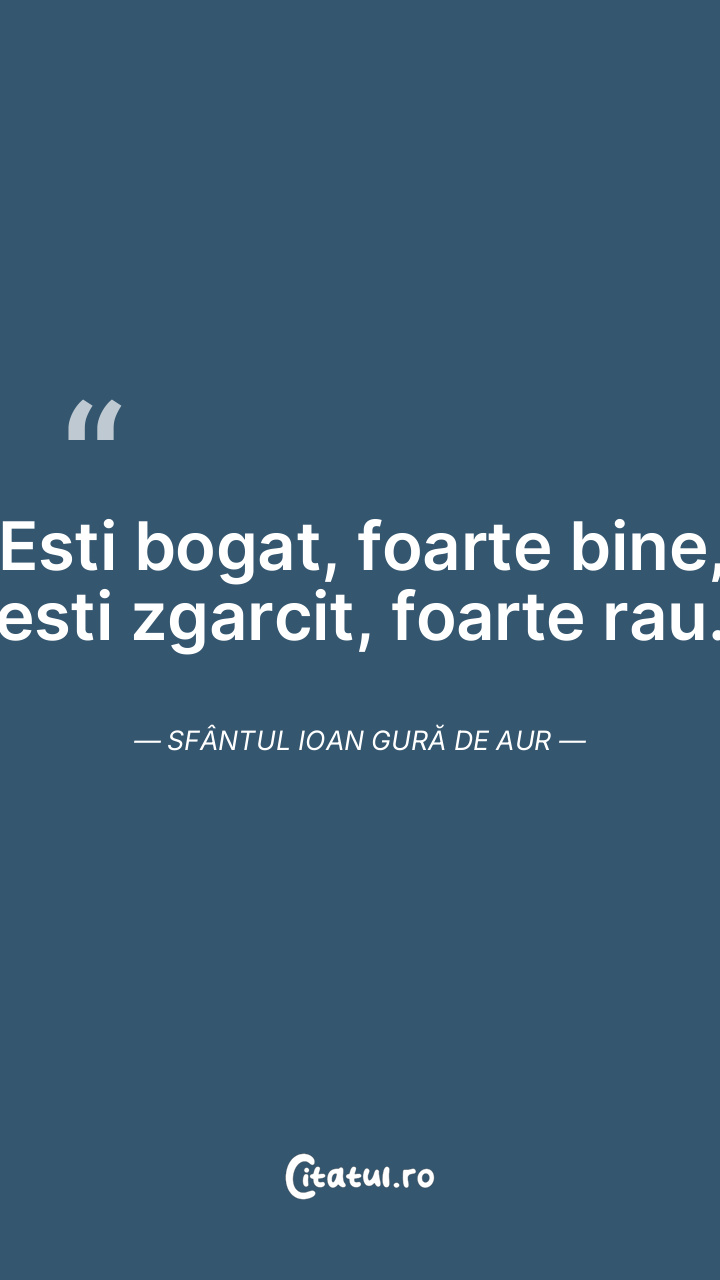 Esti bogat, foarte bine, esti zgarcit, foarte rau. Sfântul Ioan Gură de Aur