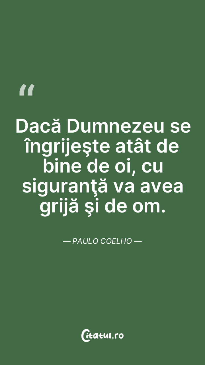 Dacă Dumnezeu se îngrijeşte atât de bine de oi, cu siguranţă va avea grijă şi de om. Paulo Coelho