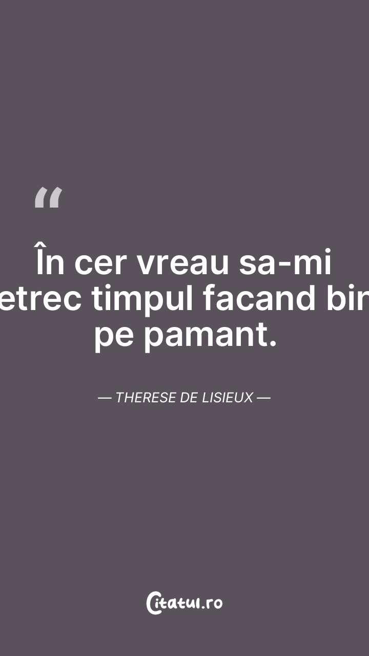 În cer vreau sa-mi petrec timpul facand bine pe pamant. Therese de Lisieux