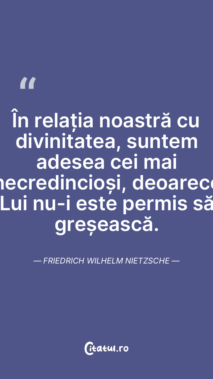 În relația noastră cu divinitatea, suntem adesea cei mai necredincioși, deoarece Lui nu-i este permis să greșească. Friedrich Wilhelm Nietzsche