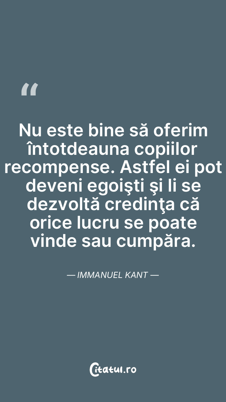 Nu este bine să oferim întotdeauna copiilor recompense. Astfel ei pot deveni egoişti şi li se dezvoltă credinţa că orice lucru se poate vinde sau cumpăra. Immanuel Kant