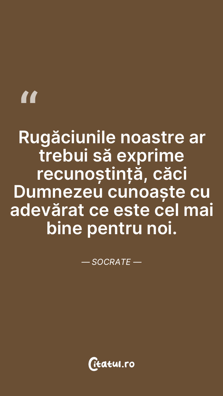 Rugăciunile noastre ar trebui să exprime recunoștință, căci Dumnezeu cunoaște cu adevărat ce este cel mai bine pentru noi. Socrate