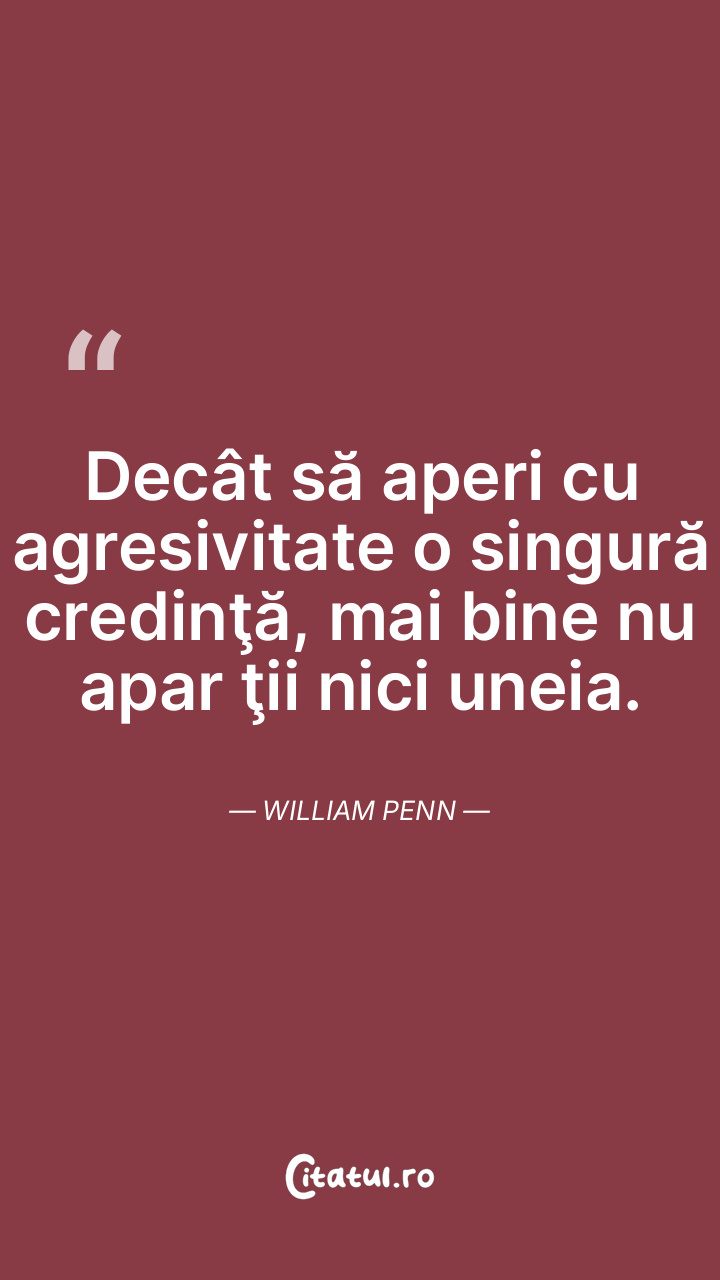 Decât să aperi cu agresivitate o singură credinţă, mai bine nu apar ţii nici uneia. William Penn