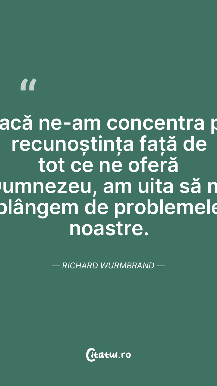 Dacă ne-am concentra pe recunoștința față de tot ce ne oferă Dumnezeu, am uita să ne plângem de problemele noastre. Richard Wurmbrand