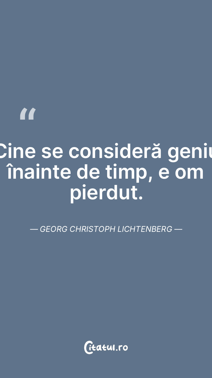 Cine se consideră geniu înainte de timp, e om pierdut. Georg Christoph Lichtenberg