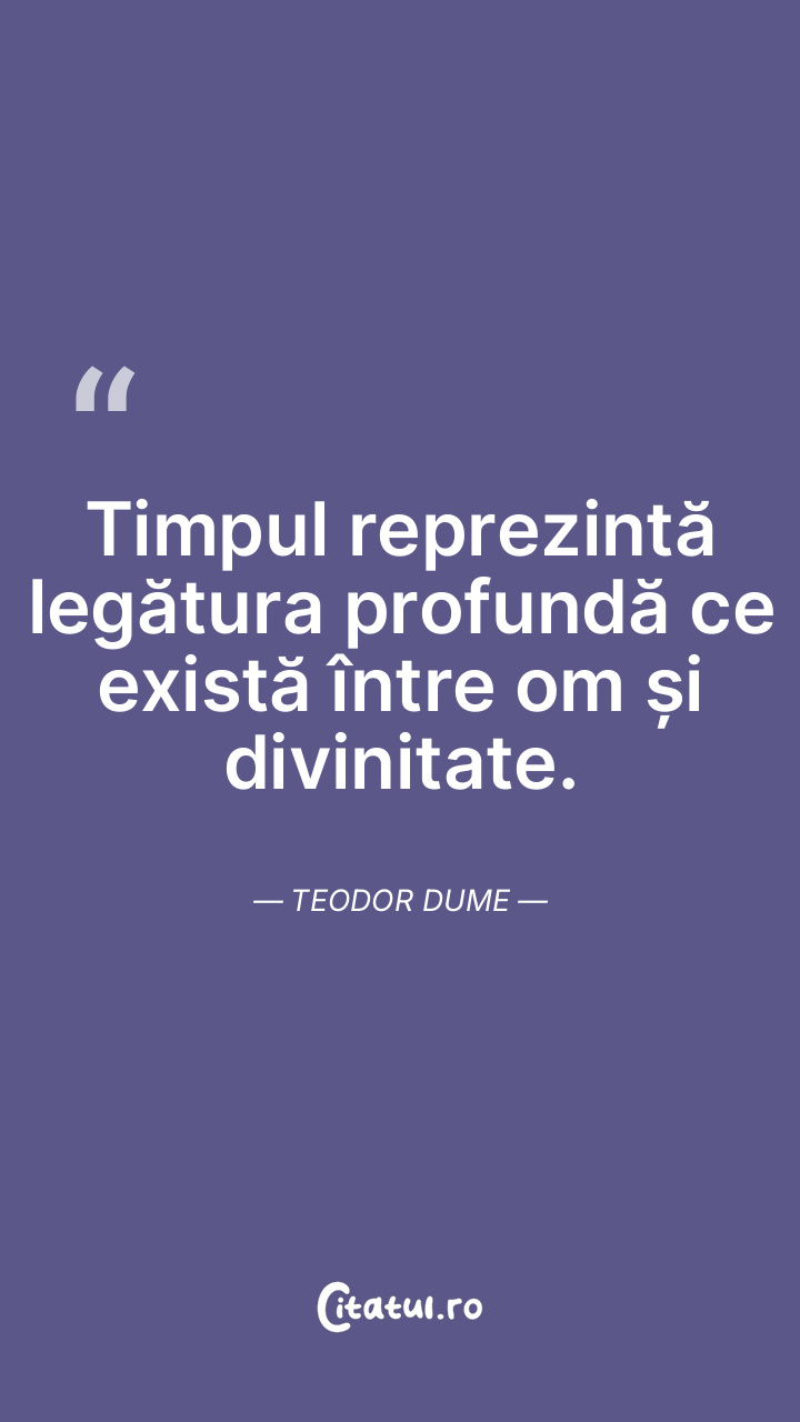 Timpul reprezintă legătura profundă ce există între om și divinitate. Teodor Dume
